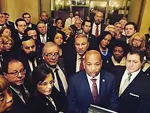 In 2015, Assemblyman William Scarborough was convicted of a felony for the inappropriate use of state funds, and as a result was forced to relinquish his seat in the Assembly.[9] With a special election called, Hyndman was nominated by the Queens Democratic Party to replace him. Facing nominal opposition, Hyndman went on to win the seat on November 3, 2015 with 91.35% of the vote.[10]