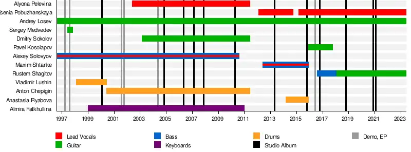 | Past members | Alexey Solovyov Alexey Polkhovskyi Sergey "Coocker" Medvedev Vladimir Lushin Almira Fatkhullina Anton Chepigin Alyona Pasynkova (Pelevina) Dmitry Sokolov Max Shtanke Anastasiya Ryabova Rustem Shagitov |