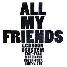 "All My Friends" is a song by American rock band LCD Soundsystem. It was released as the second single from their second studio album Sound of Silver on May 28, 2007 and was written by Pat Mahoney, James Murphy, and Tyler Pope. The song received acclaim from critics and was on many year-end lists. It peaked at #41 on the UK Singles Chart. B-sides for the single include covers of the song by Scottish indie rock band Franz Ferdinand and former Velvet Underground member John Cale.