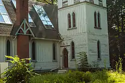 All Saints' Church is a historic Carpenter Gothic style Episcopal church at Easton, Talbot County, Maryland, United States. It is a small rectangular frame church constructed in 1900–1901. The exterior features of the church include a three-stage bell tower with a shingled spire. The interior features imported stained glass windows from Munich, Germany, along with decorative tile floors, a darkly stained exposed timber roof structure, and intricately carved church furniture. The church was designed by New York architect, Henry Martyn Congdon.[2]