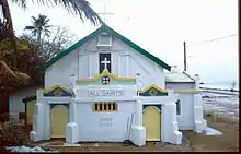 All Saints Church is a mass concrete structure with a timber framed red corrugated asbestos cement and galvanized steel roof, located 5–15 metres (16–49 ft) from Badog Beach on the south west side of Erub (Darnley) Island in the Torres Straits.[1]
