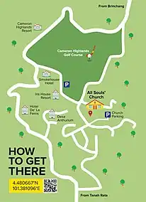 - "All Souls' Church, Cameron Highlands, Malaysia, Google map". Google Inc. Retrieved 8 April 2018.