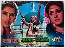 Allah Rakha is a 1986 Indian Masala film directed by Ketan Desai and starring Jackie Shroff in the title role, along with Dimple Kapadia, Meenakshi Sheshadri, Shammi Kapoor, Biswajeet, Waheeda Rehman. The film is notable as the protagonist, played by Jackie Shroff, is a Muslim, unusual in Hindi cinema that time.[1]
