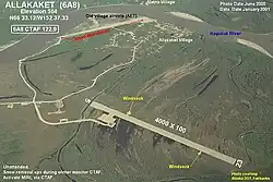 Allakaket Airport (IATA: AET[3], ICAO: PFAL[4], FAA LID: 6A8), is a state-owned public-use airport located two nautical miles (4 km) north-northwest of the central business district of Allakaket, a city in the Yukon-Koyukuk Census Area of the U.S. state of Alaska.[1] The airport is sometimes referred to as the New Allakaket Airport because it was constructed on a site southeast of the original airport which is now closed.[5]