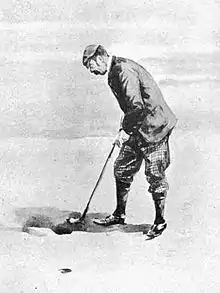 ![]() A watercolor by T. Hodge of Macfie putting, c. 1886 | |