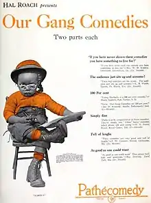 Born in Boston in 1920, Allen Clayton Hoskins was just one year old when his tenure with Our Gang began. His character stayed in the series through the silent years and the transition to talking pictures, and he left the series in 1931 at the age of eleven. With his pigtailed hair and patchy outfits, Farina resembled a pickaninny[1] in the tradition of the character Topsy from Uncle Tom's Cabin,[2] but as the character became more popular, and as Allen Hoskins got older, Farina developed his own personality separate from that of Topsy. The name "Farina", derived from a type of cereal, was chosen because its gender was ambiguous: As a toddler, Farina was portrayed as both a boy and a girl, sometimes both genders in the same film.[3]