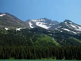Allen Mountain (9,381 ft (2,859 m)) is located in the Lewis Range, Glacier National Park in the U.S. state of Montana.[1][3] Allen Mountain is NNW of Cracker Lake. The mountain is named to honor Cornelia Seward Allen, the granddaughter of President Abraham Lincoln's Secretary of State William H. Seward Sr. The mountain was named in 1891 by a party of explorers headed by George Bird Grinnell that included Cornelia's brother, William Henry Seward III, a Yale University classmate of Grinnell.[4]