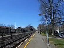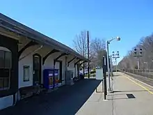 ![]() View from westbound platform to original station building, 2011 | ||||||||||||||