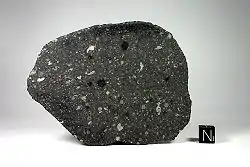 The Allende meteorite is the largest carbonaceous chondrite ever found on Earth. The fireball was witnessed at 01:05 on February 8, 1969, falling over the Mexican state of Chihuahua.[1] After it broke up in the atmosphere, an extensive search for pieces was conducted and over 2 tonnes (2.2 tons) were recovered. The availability of large quantities of samples of the scientifically important chondrite class has enabled numerous investigations by many scientists; it is often described as "the best-studied meteorite in history."[2] The Allende meteorite has abundant, large calcium–aluminum-rich inclusions (CAI), which are among the oldest objects formed in the Solar System.
