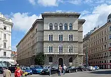 The Allgemeine Verkehrsbank was established in 1864, initially as a discount bank. It soon developed as a universal bank, with investments in heavy engineering and machinery, paper, sugar, hospitality, and other industries. It was located from inception at Wipplingerstrasse 28 in Vienna, which it had rebuilt in 1880–1883 on a design by architect Friedrich Schachner. It was acquired by the Bodencreditanstalt in 1927,[3] possibly as an intended offset to the acquisition of the much more troubled Unionbank at the same time.[4]: 33
