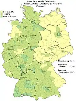 In May 2005, the only remaining state-level red-green coalition government lost the vote in the North Rhine-Westphalia state election, leaving only the federal government with participation of the Greens (apart from local governments). In the early 2005 federal election the party incurred very small losses and achieved 8.1% of the vote and 51 seats. However, due to larger losses of the SPD, the previous coalition no longer had a majority in the Bundestag.