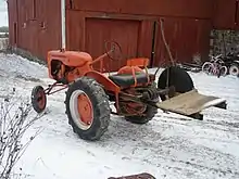 The Model B was initially powered by a Waukesha 113-cubic-inch (1,850 cc) four-cylinder engine, then from 1938 by an Allis-Chalmers 116.1-cubic-inch (1,903 cc) engine. This was increased to 125.2 cubic inches (2,052 cc) in 1943, all with three-speed transmissions. The Model B was adapted for a variety of specialty crops, with variants including a high-clearance Asparagus Special and a narrow-track Potato Special. As a row-crop tractor the rear and wide front axles were adjustable. A standard tractor version, the IB, with fixed axles, was produced as an industrial tractor, often used as a mower.[1][2][5]