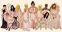 Between 2009 and 2012, DC Collectibles produced a series of statues of various female DC characters that were based on Hughes' cover art called Cover Girls of the DC Universe. These included statues of Black Canary, Catwoman, Zatanna,[41] Hawkwoman, Harley Quinn, Poison Ivy, Supergirl,[42] and one of Wonder Woman based on Hughes' cover to Wonder Woman vol. 2 #150.[41]
