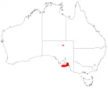 Endemic to South Australia the species is confined to an area in the south east of the state on the southern Mount Lofty Ranges, the Fleurieu Peninsula and on Kangaroo Island. It grows in heath and sandy lateritic soils.[4] When cultivated it grows best in full sun or part shade and is found on hills, footslopes and plains. It will tolerate drought, moderate frost and soil salinity.[1]