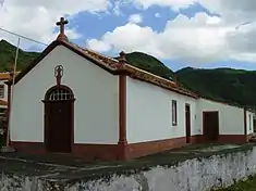 - Hermitage of Nossa Senhora dos Remédios (Portuguese: Ermida de Nossa Senhora dos Remédios/Ermida de Santo Amaro), dedicated to Our Lady of Medicine, the chapel is located in southern coastal place of Praia Formosa, alongside the Ribeira da Praia, it is a simple rectangular temple with small sacristy, a decorative archway door (inscribed with the words "1868/S AMARO", when it was then known as the Chapel of São Amaro) and constructed masrony brickwork later painted white.[20] Along with the sacristy, the single nave chapel has a well-preserved pulpit of wood, with elements designed in the Baroque style (principally spiral rosettas).[20][21]