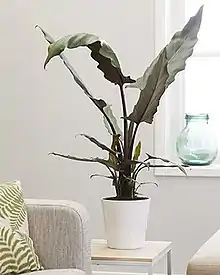 Alocasia lauterbachiana, the purple sword, silver sword, or baroque sword, is a species of flowering plant in the family Araceae, native to northern New Guinea and the Bismarck Archipelago.[1][2] With its upward-pointing leaves reaching 1.5 m (5 ft), it is kept as a houseplant and is readily available in commerce.[3]