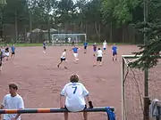 The sports facilities include two gymnasiums next to the school building. In front of the gyms is a basketball court. The school yard also contains a basketball and handball court. Beyond the school yard on the way to Stella there is a football field, a tartan track, five tennis courts, and a half-court (wall-court).