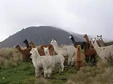 Alpacas are native to Peru, but can be found throughout the globe in captivity.[30] Peru currently has the largest alpaca population, with over half the world's animals.[31] The population declined drastically after the Spanish Conquistadors invaded the Andes mountains in 1532, after which 98% of the animals were destroyed. The Spanish also brought with them diseases that were fatal to alpacas.[32]