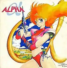 Alpha is one of Nobuo Uematsu's earliest video game soundtracks.[8] A promotional soundtrack was released on flexi disc on August 7, 1986. It contains the tracks "Prologue ~Theme from Alpha~" and "CHRIS".[9] The game was praised at its release for its animation quality and the rich facial expressions of its characters.[4] A prison sequence that is repeated multiple times throughout the game became notorious among fans for depicting Chris naked.[5]