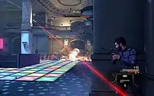 By choosing the correct dialogue options and completing certain gameplay challenges, players can earn small combat enhancements called Perks.[2] Thorton's skills can be extensively customized. Players earn experience points while completing certain actions. Skills points are earned when players level-up after earning sufficient experience points, which can be used to upgrade nine aspects of Thorton's skills; namely Stealth, Pistols, Submachine Guns, Shotguns, Assault Rifles, Sabotage, Technical Aptitude, Toughness and Martial Arts. Spending points on these aspects unlock new skills that can be activated to enhance Thorton's combat efficiency.[10] For instance, a skill known as Chain Shot slows the passage of time and allows players to kill enemies in rapid succession. Players can specialize in three skills, which further raises the level cap.[11]