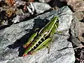 Alpinacris tumidicauda is a species of grasshopper only known from Otago and Southland, New Zealand. The genus Alpinacris is endemic to the South Island of New Zealand. A. tumidicauda was described in 1967 by Robert Sidney Bigelow,[1] with a type locality of Obelisk (Māori: Kopuwai) in the Old Man Range (45°19′22″S 169°12′27″E). A male holotype and paratype are deposited in the Canterbury Museum, Christchurch. Like all of New Zealand sub-alpine and alpine grasshoppers, A. tumidicauda has a 2- or 3-year life cycle. The eggs must "overwinter" before they will hatch. Hoppers are found throughout the year, and adult grasshoppers can be found throughout the New Zealand summer between December and April. The adult A. tumidicauda do not overwinter.