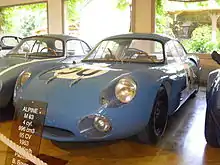 After the problems encountered, Alpine built three units of a revised model based on the M63, named as M64. The new cars were entered alongside some of their predecessors into the 1964 24 Hours of Le Mans where an M64 powered by a 1.1-litre engine won its class and the index of performance (chassis 1711). An M64 also won its class at the 12 Hours of Reims of that year (chassis 1711).[3][4] In 1965, Alpine introduced yet another revised version of its prototypes, named as M65. At the 1965 24 Hours of Le Mans none of the Alpine prototypes entered finished the race,[3] although M65s won their class on the 12 Hours of Reims and the Nürburgring 1000 km of that year.[5]