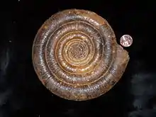 Alsatites is an extinct genus of cephalopod belonging to the Ammonite subclass. They lived during the Early Jurassic, Hettangian till the Sinemurian and are generally extremely evolute, many whorled. Keel broad and blunt organisms, they also exhibit a primary ribbing which is close and persistent.[2]