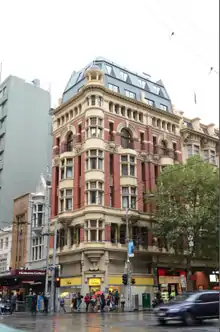 The building was constructed in 1903–1904 by master builders Clements Langford Pty Ltd, and extended by one bay on Collins Street in 1908.[1] The architect, Nahum Barnet, was a respected and prolific architect of the time, designing a range of commercial, residential and religious works from the 1880s into the 1910s, with many examples in the CBD.