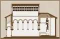 In the parish church of Alella there is another piece that can be attributed to Gaudí. It is the first section of the staircase of the romanesque bell tower, considered the most notable of its style in the coastal area of Catalonia,[11] which received a modification in its initial section on the ground floor giving it curved shape with broken triangular floor steps so that each step allows to gain two heights, according to the Gothic system described and illustrated by Viollet-le-Duc that allows stairs with slopes of up to 45 degrees.[12] Gaudí should be credited with having innovated on this scheme which applied only to straight stairs. By the same dates Gaudí was building a similar staircase in the stables of the Finca Güell, which turns very likely to attribute to him the one of the bell tower of Alella. Stairs with the same configuration were projected by Gaudí in the waterfall of the park of the Ciutadella in Barcelona when he collaborated with Joan Fontseré.[13] In this case the structure was metallic, while the other two are made of bricks.