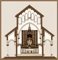 The Altarpiece of Alella is an altarpiece by the Catalan architect Antoni Gaudí that is part of the project of the chapel of the Holy Sacrament commissioned in 1883 by the Rector Jaume Puig i Claret for the parish church of Sant Feliu (Saint Felix) in Alella.[1] It became known by a drawing preserved in the parochial archive found in 1959, delineated with India ink in two colours and showing Gaudí's signature, published for the first time in the same year.[2] A reproduction was included the book Gaudí by George R. Collins the following year[3] which was transcendent for the worldwide diffusion of the work of the architect of Reus as it was the first monograph dedicated to him in English language.