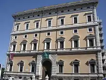 The palace was built on the site once occupied by the Villa Montalto-Peretti, named after Pope Sixtus V, who had been born Francesco Peretti. The present building was commissioned by Prince Massimiliano Massimo, so as to give a seat to the Jesuit Collegio Romano, originally within the convent of the church of Sant'Ignazio. In 1871, the Collegio had been ousted from the convent by the government which converted it into the Liceo Visconti, the first public secular high school of Italy. Erected between 1883 and 1887 by the architect Camillo Pistrucci in a neo-cinquecentesco style, it was one of the most prestigious schools of Rome until 1960. During World War II, it was partially used as a military hospital, but it then returned to scholastic functions until the 1960s, when the school was moved to a newer seat in the EUR quarter.