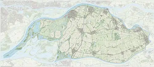 A car ferry in the very western part connects the city of Dordrecht with Altena.