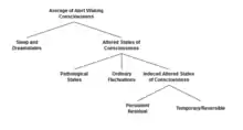 An altered state of consciousness (ASC),[1] also called altered state of mind or mind alteration, is any condition which is significantly different from a normal waking state. By 1892, the expression was in use in relation to hypnosis,[2] though there is an ongoing debate as to whether hypnosis is to be identified as an ASC according to its modern definition. The next retrievable instance, by Max Mailhouse from his 1904 presentation to conference,[3] however, is unequivocally identified as such, as it was in relation to epilepsy, and is still used today. In academia, the expression was used as early as 1966 by Arnold M. Ludwig[4] and brought into common usage from 1969 by Charles Tart.[5][6] It describes induced changes in one's mental state, almost always temporary. A synonymous phrase is "altered state of awareness".