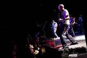 One of the main characteristics of alternative metal and its subgenres are heavily downtuned, mid-paced "chug"-like guitar riffs.[11][12][13] However, funk metal bands often use a more conventional riffing style influenced by 1980s thrash metal.[14] Alternative metal features clean and melodic vocals,[4] influenced by those of alternative rock, in contrast to other heavy metal subgenres. Later bands frequently incorporated vocal styles that alternated between clean singing, growls and screaming.[5][15][16][17] Examples include alternative metal bands associated with the nu metal movement, such as Korn and Deftones, who have been described as having "bipolar vocals".[18][19]