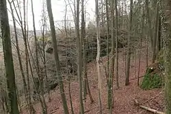 ![]() The burgstall of the Altes Schloss. Castle rock seen from the NW (December 2014) | |
