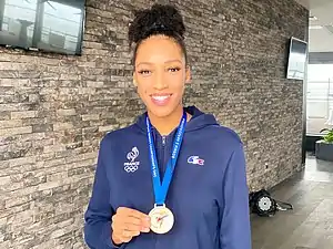 ![]() Althéa Laurin with the silver medal won at the 2019 European Championships for Olympic Weight Categories | ||