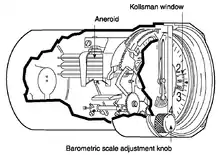 Diagram showing the internal components of the sensitive aircraft altimeter.