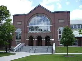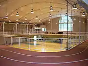 Dartmouth College's Alumni Gymnasium, located in Hanover, New Hampshire, in the United States, is the center of Dartmouth College's athletic life and hosts venues for many of Dartmouth's 34 varsity sports. After its completion in 1910, it was considered to be one of the most complete athletic facilities in the Eastern United States. The gymnasium contains two swimming pools, intramural basketball courts, championship basketball courts, two weight rooms, squash courts, 1/13 of a mile jogging track, two saunas, fencing lanes, and a rowing tank for crew training.