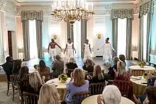 The Alvin Ailey American Dance Theater has performed for an estimated 25 million people in 48 states, as well as 71 countries on six continents. Among these performances are included two South African residencies. The company has often been an ambassador for American culture, starting with President John F. Kennedy's Southeast Asia tour program. The troupe toured southeast Asia and Australia in 1962, and performed in the International Arts Festival in Rio de Janeiro, Brazil, in 1963. They performed at the first World Festival of Negro Arts in Dakar, Senegal, in 1966. In 1968, AAADT performed at the Edinburgh Festival, earning awards for "best choreographer", and "best company". They were also awarded "best male dancer" at the International Dance Festival in Paris in 1970, the same year that they did a six-city tour of the USSR.[2] The company and its dancers and artistic staff have been recognized as cultural ambassadors numerous times, as in the 2001 awarding of the National Medal of Arts to both Judith Jamison and the Alvin Ailey Dance Foundation.[25] In 2008, the United States Congress passed a resolution officially designating the company a "vital American Cultural Ambassador to the World."[26][27][28]