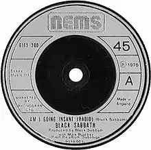 "Am I Going Insane (Radio)" is a single by the band Black Sabbath from the 1975 album Sabotage. Although common conception is that the suffix "Radio" was said to be added to the title because it was made for the purpose of being played on the radio, drummer Bill Ward said that it was Cockney rhyming slang for "mental"—radio-rental. Critics have noted the coincidence of the title and the fact that all Black Sabbath members except Tony Iommi were later clinically depressed.[2] Also, as the song fades, there is a disturbing cry that sounds like someone going 'mental.' It has been theorized that the recording was of Jessica, Ozzy's daughter, but a 1975 interview with him suggests that it was not Jessica. The engineer for Sabotage revealed that it came from an unmarked cassette found at the studio.[3]
