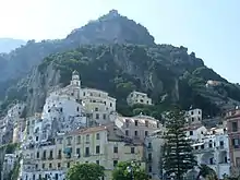 Amalfi (UK: /əˈmælfi/,[3][4] US: /ɑːˈmɑːlfi/,[5] Italian: [aˈmalfi]) is a town and comune in the province of Salerno, in the region of Campania, Italy, on the Gulf of Salerno. It lies at the mouth of a deep ravine, at the foot of Monte Cerreto (1,315 metres, 4,314 feet), surrounded by dramatic cliffs and coastal scenery. The town of Amalfi was the capital of the maritime republic known as the Duchy of Amalfi, an important trading power in the Mediterranean between 839 and around 1200.