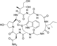 Amaninamide is a cyclic peptide. It is one of the amatoxins, all of which are found in several members of the mushroom genera Amanita, Lepiota and Galerina. It differs from alpha-amanitin in lacking the hydroxyl group on tryptophan. This alters its UV absorption spectrum but not its toxicity.