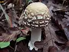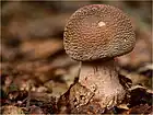 Amanita regalis, commonly known as the royal fly agaric or the king of Sweden Amanita, is a species of fungus in the family Amanitaceae. Common in Scandinavian countries, it is also found in eastern and northern Europe. In North America, its distribution is restricted to Alaska. The fruit bodies of the fungus somewhat resemble the fly agaric (Amanita muscaria), and it was formerly regarded as a variety of this species. A. regalis differs from it in being larger, with a liver-brown cap bearing numerous scabs, and in having a stem which is yellow-ochre at the base, with patches or rings of patches. Chemical analysis has shown that this species contains muscimol, the same psychoactive compound found in A. muscaria.