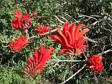 Amanzimtoti offered refuge to many Middle Eastern and British evacuees during the Second World War, many of whom lived in holiday cottages and in private homees. When a school was started at Toti Town Hall, Dr Frickle paid for two teachers' salaries out of money he made at his clinic selling "No 9s" (red pills "from the army"), which he purportedly prescribed "for everything". Miss Burns (who ran the Guides) held the first Arbour Day in Natal, and along with 16 Guides, planted 60 Erythrina lysistemon trees along Beach Road.[2] These trees "blazed red" when in flower and were known as the "glory of Beach Road"; for this reason, the Coral Tree is included in the crest of Amanzimtoti. These trees were however cut down in the 1950s when Beach Road was widened and tarred.[2]