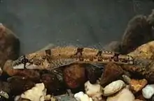 The amber darter (Percina antesella) is a small, endangered species of freshwater ray-finned fish, a darter from the subfamily Etheostomatinae, part of the family Percidae, which also contains the perches, ruffes and pikeperches. It is native to the Conasauga River and Etowah River in Georgia and Tennessee in the United States. It typically inhabits riffle areas over gravel and sand bottoms, hiding in aquatic vegetation when present. It feeds on small invertebrates and probably breeds between late fall and early spring. It is an uncommon fish with a small range and the International Union for Conservation of Nature has classified its conservation status as being "endangered".