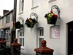 The parish church of Holy Trinity was begun in 1841, and the church completed in 1842 and consecrated in 1844, being made a separate ecclesiastical parish (a perpetual curacy) in 1845 and then a vicarage in 1868.[4] Amblecote Parish Church of the Holy Trinity is almost unique (as is nearby Quarry Bank Church) because it is constructed completely of yellow fire bricks, made by local brickworks (William King and Co) from the local fire clay which, together with thick coal seams, forms the main strata of Amblecote in the east, whilst the new red sandstone underlies Amblecote to the west of the railway line. Local benefactors, such as the Foster Rasterick Ironworks, supplied the iron railings around the perimeter of the church and Amblecote was one of few to retain these railings following World War II when many churches did not keep them.