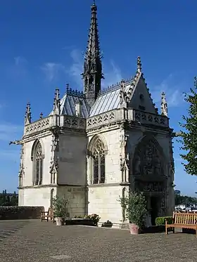 The Château d'Amboise is a château in Amboise, located in the Indre-et-Loire département of the Loire Valley in France. Confiscated by the monarchy in the 15th century, it became a favoured royal residence and was extensively rebuilt. King Charles VIII died at the château in 1498 after hitting his head on a door lintel. The château fell into decline from the second half of the 16th century and the majority of the interior buildings were later demolished, but some survived and have been restored, along with the outer defensive circuit of towers and walls. It has been recognised as a monument historique by the French Ministry of Culture since 1840.[1]