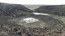 Amboy Crater is a dormant cinder cone volcano that rises above a 70-square-kilometer (27 sq mi) lava field in the eastern Mojave Desert of southern California, within Mojave Trails National Monument.[2][4]