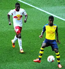 During the 2013 season, Oyongo went on trial with French side Lille and it was reported that he would be joining the Ligue 1 side during the 2014 January transfer window.[2] The move never materialised and in January 2014 Oyongo went on trial with New York Red Bulls. He impressed during his trial and on 7 March 2014, he officially signed with the club.[3] In his first season with New York, the versatile Oyongo was a key player for the club during the second half of the season as he made starts at both left-back and in midfield helping his side qualify for the league playoffs. On 30 October 2014, Oyongo assisted on Bradley Wright-Phillips winning goal in the last minute of the match helping New York defeat Sporting Kansas City and advance to the Eastern Conference Semifinals.[4]