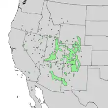 For the Utah serviceberry, the core mountainous range is delimited by the Colorado–New Mexico–Wyoming Rocky Mountains[2] in the east, the Front ranges of Utah at the west, and the south in central Arizona-western New Mexico by the Mogollon Rim and White Mountains (Arizona) region[2] of east Arizona and New Mexico.